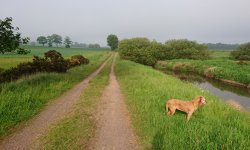 Waf en ik hobbelen weer langs het water en lopen langs de akker terug naar het bos. Ik neem nu een andere route zodat ik niet meer over het zandpad hoef en kom via het bospad pas helemaal aan het einde bij de brug van het family park er weer uit. Ik ben nu vlakbij de auto. Na 11 km klok ik af. Prima rondje deze keer en woefje is ook happy. Vanmiddag een stukje fietsen. Dan kom ik ook weer bij het Ford!