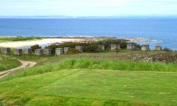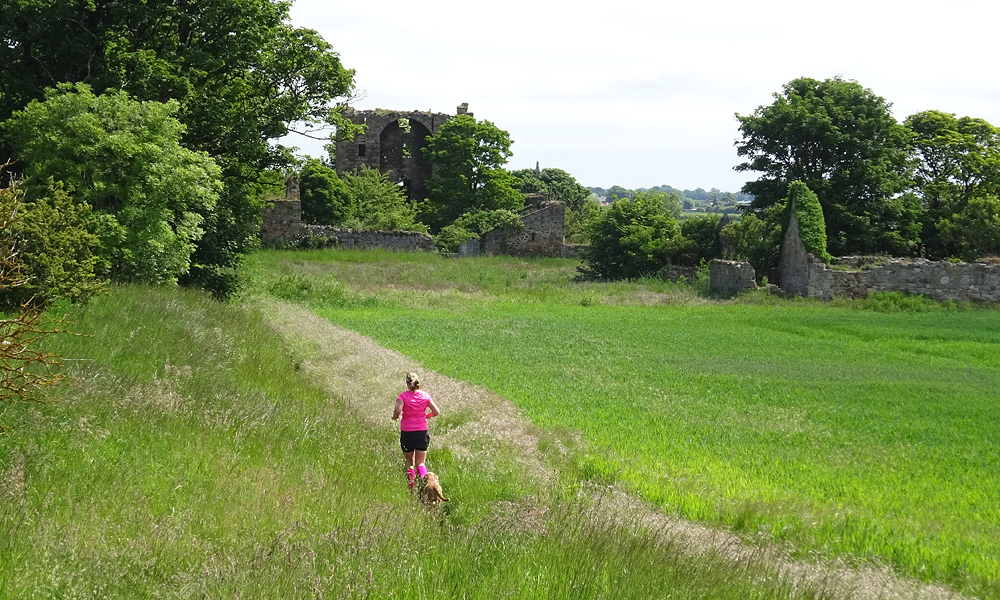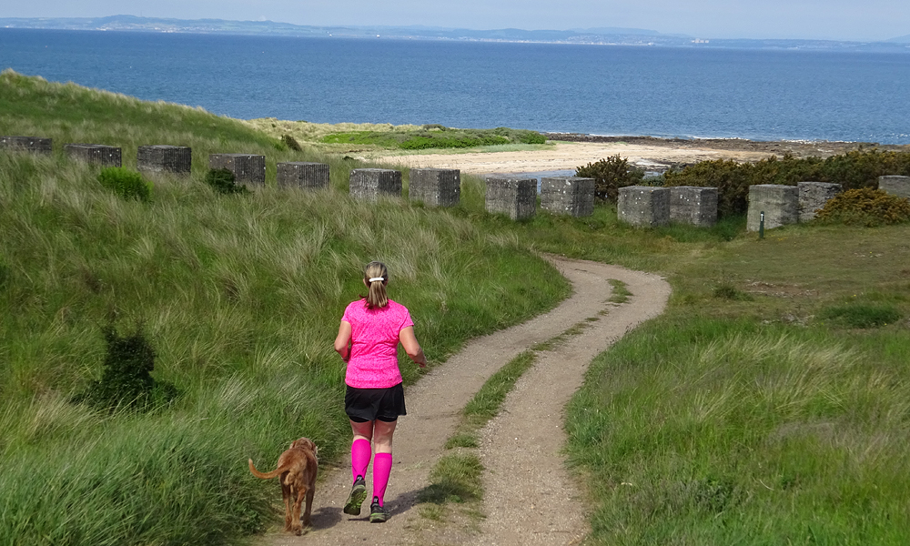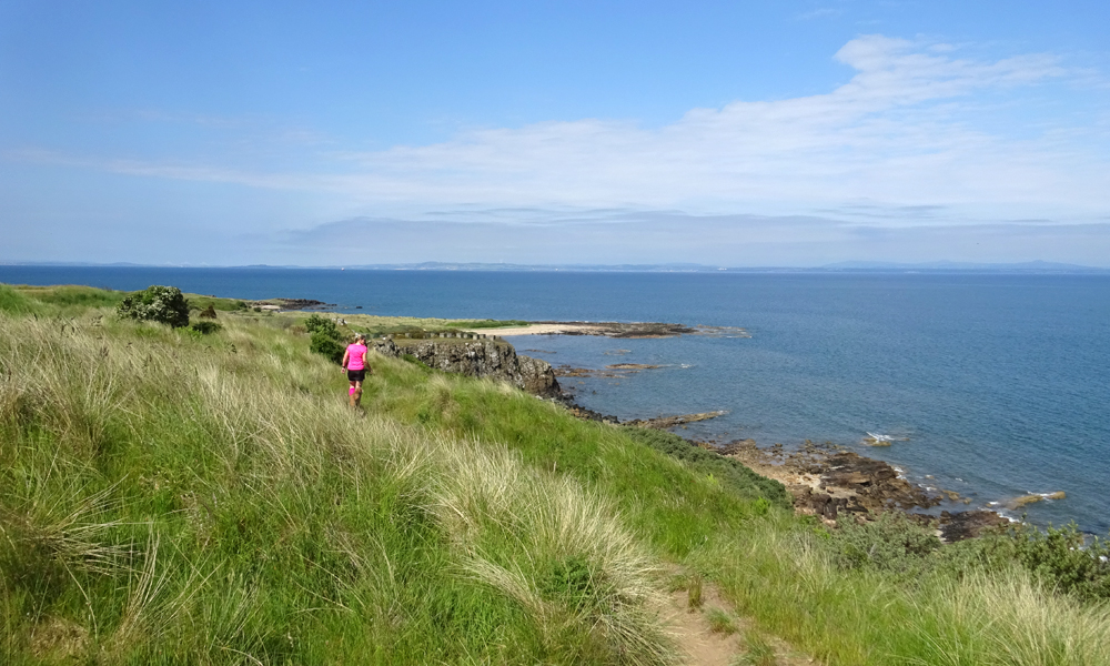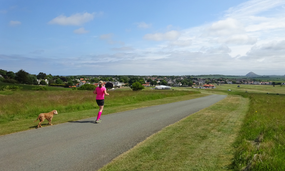 Als we weer op het goed pad zitten, hobbelen we weer terug naar het centrum van Gullane en lopen weer langs het castle. Het blijft mooi maar wel open en warm. Ik heb er wel genoeg van eigenlijk want dit wordt toch niks meer qua run.