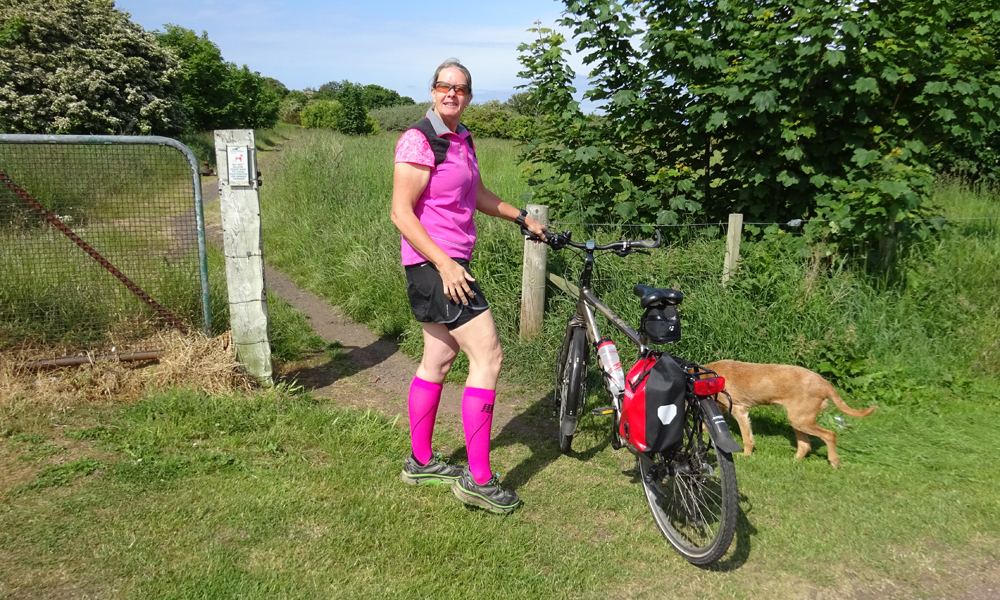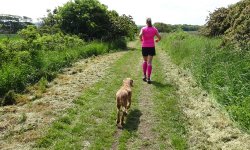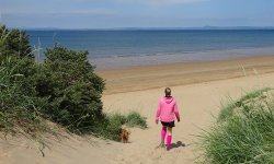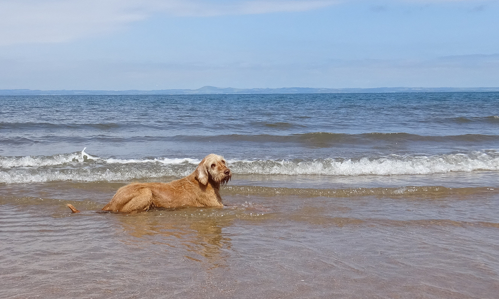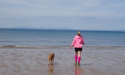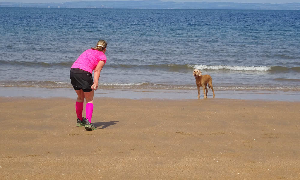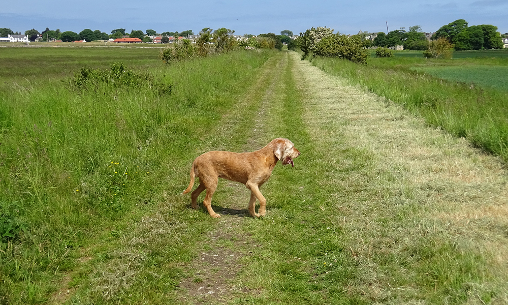 Gisteren heb ik niet gelopen maar gerust na de fietstocht van 5 en 6 juni. Dat was erg leuk maar ook best vermoeiend. Omdat de trip er nu ineens bijna op zit, besluiten we toch alsnog ergens een stukje te gaan lopen waar we nog niet geweest zijn deze keer. Omdat het prachtig weer is, besluiten we naar Gullane te gaan omdat daar ook een mooi strand is voor woefje zodat ze lekker wat kan badderen. Zo gezegd zo gedaan en we rijden met de auto en de fiets naar Gullane. Omdat het pad ook geschikt moet zijn voor de fiets, zal het nog even zoeken worden naar het beste pad maar we gaan voor een mooie route langs het water en een rondje naar Saltoun Castle waar we al eerder waren ook tijdens een fietstocht vorig jaar. Ik liep al eerder in Gullane en ontdekte daar allerlei paden of juist ontbrekende paden. Ik herinner me nog een strandtocht waar ik met moeite op handen en voeten ergens naar boven klauterde, of juist de andere kant op waar het strand toch ineens ophield. Maar mooi was het en daarom hadden we hoge verwachtingen van de run. Laat ik vast verklappen dat dit vooral met de benenwagen moet en niet met de fiets omdat het dan veel te saai is.