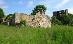 Al snel hobbelen we naar beneden over de verharde (!) weg terug naar het centrum van het dorpje. Daar kijken we dan maar even bij de ruine van het castle.