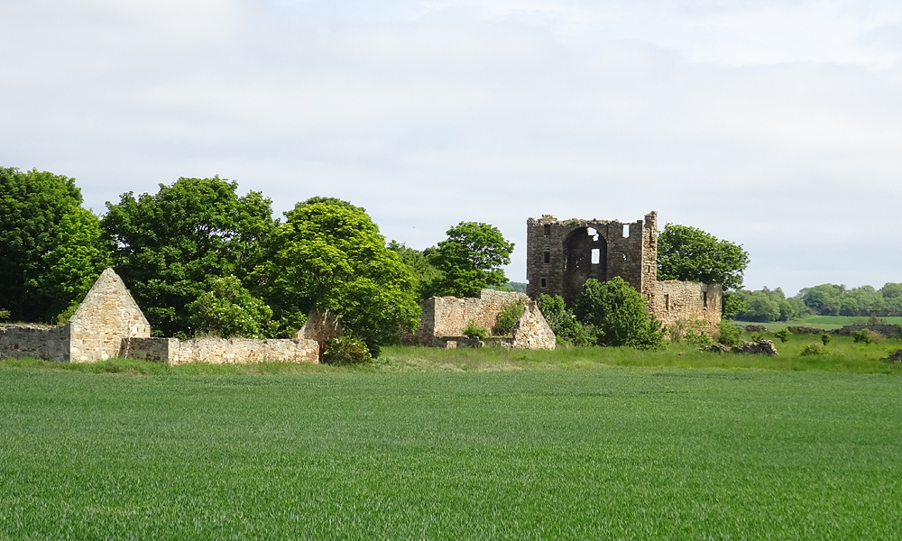 We moeten even zoeken naar het pad richting Saltoun maar uiteindelijk zitten we goed. Het is hartstikke warm en het is geen leuke run op deze manier. Maar het castle is wel leuk en daar lopen we dan maar even heen nu. Kan wafje ook weer even uitpuffen in de schaduw daar.