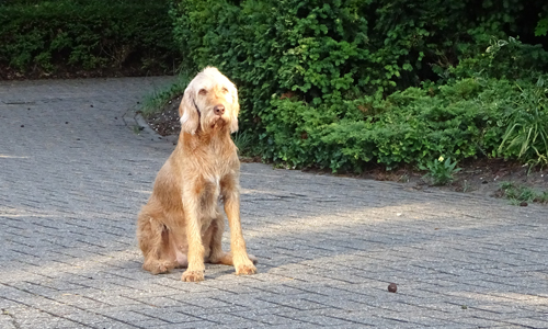 Ongelooflijk maar waar: ik heb toch al 2 dagen niet gelopen. Gisteren heb ik wel een rondje gefietst met Anke op de racefiets en dat was leuk en ging goed. na het fietsen ging het wel ineens keihard regenen. Ik heb niet eens gezwommen notabene terwijl regen daarvoor niets uitmaakt natuurlijk. Maar goed, vandaag ga ik dan toch even op pad met woefje. Om 8 uur vertrekken we voor een rondje. Het weer is op zich prima en een stuk koeler dan de voorgaande dagen. Dat is ook fijner voor woefje. Misschien gaat het vanaf nu wel wat makkelijker worden. Ik hoop het maar. Ik ga eerst even de vissen voeren en de eekhoorns nieuwe noten geven. Woefje wacht rustig af totdat we vertrekken.