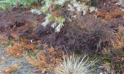 Ik kies het gebruikelijke rondje aan de overkant van het spoor. Eerst over het MTB pad en daarna weer terug al dan niet via de langere route. Na 4 km krijgt woefje weer water. Het bos ziet er nog steeds tamelijk droog en dor uit. Wij sproeien ons ook rot in de tuin maar et lijkt redelijk te gaan. Als we maar niet denken dat die paar regenbuitjes nu betekenen dat we niet meer hoeven te sproeien…. Ik loop vandaag alleen het korte rondje en na 8,5 km staan we alweer voor de deur.