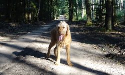 Vandaag gaan we alweer samen op pad voor een rondje. Het langere warme rondje in het Zandenbos heeft wafje prima doorstaan. Vandaag dus eens kijken hoe het gaat. eerst even aan de overkant op pad en omdat dat prima lijkt te gaan meteen door naar het Willemsbos. We lopen ons bekende rondje maar het gaat eigenlijk heel erg goed. Ik loop een beetje door en hou minder pauzes. Dat lijkt woefje allemaal prima te vinden. Natuurlijk krijgt ze weer haar watertje elke 4 km en dat heeft ze blijkbaar ook echt nodig. Ik sjouw wel met dat water hoor….