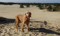 Aan het einde van de run ga ik nog even op de zandverstuiving kijken en maak een kiekje van mijn mooie warme woefje. Samen liepen we toch maar weer mooi 10 km vandaag!