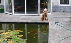 In de middag gaan we woefje wegen en met de fiets even wat boodschappen doen. Dat is ook weer lekker even buiten bezig zijn met dit mooie weer. De tuin ligt er ook nog steeds mooi bij. Volgende week komen er als het goed is waterzuilen voor naast de vijver.