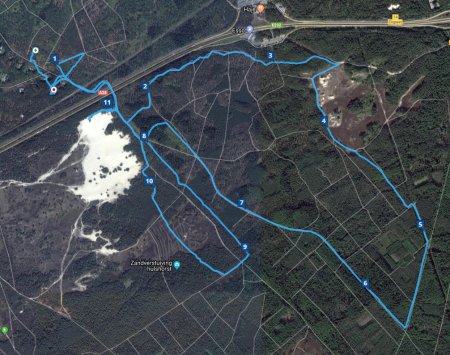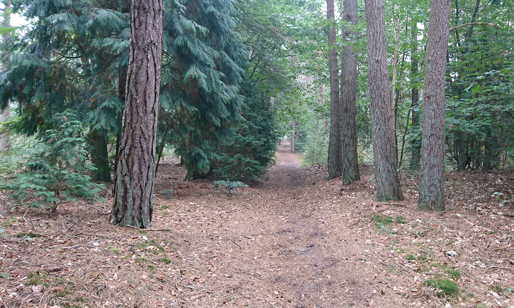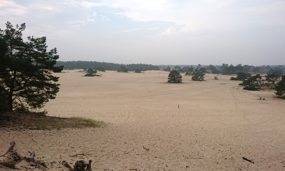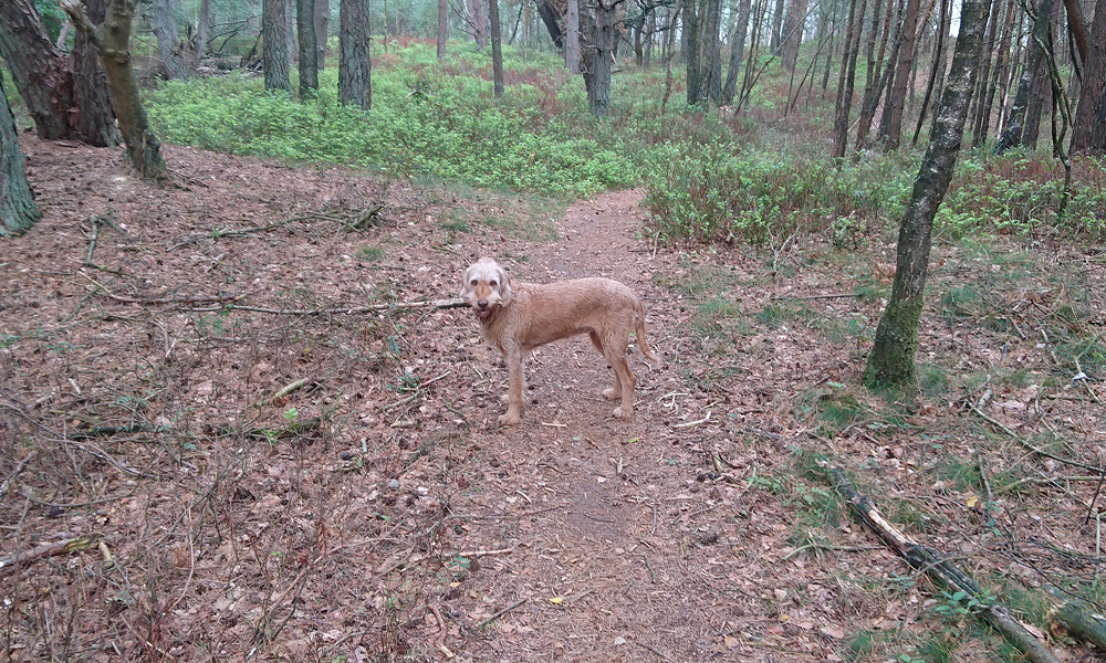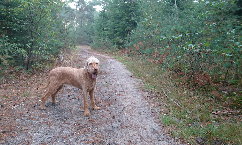 Inmiddels lopen wafje en ik weer terug richting huis. Even via het bospad naar de zandverstuiving kijken.