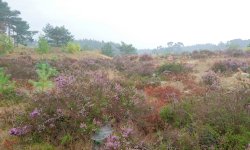 Ik loop de gebruikelijke ronde eerst langs het hek, daarna langs de heide en terug naar het fietspad en weer rechtsaf. Dat is echt een mooie route en prima begaanbaar. Er is geen kip vandaag maar het is ook niet echt mooi weer vandaag. Woef vindt het helemaal goed qua temperatuur zo en ik ook. Als we weer bij het fietspad uitkomen, lopen we terug via het ruiterpad. Daar is het ook rustig. Nog nooit iemand tegengekomen op het pad en al helemaal geen ruiters.