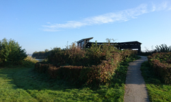 Als ik langs de vogelkijkhut kom, besluit ik toch even erheen te lopen. HM of niet. Zo vaak loop ik hier nou ook niet. Er is overigens niets te zien maar het is wel even een heel kort rustmomentje.
