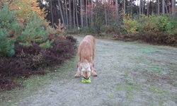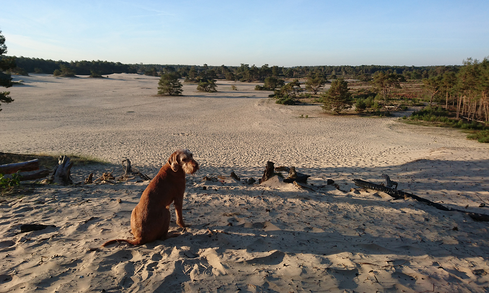 Het is vandaag 7 uur als ik vertrek met woefje. Allemachtig wat een vroege en lange dagen door de logeerhondjes. Maar goed, zo heb je nog wel iets aan de dag zullen we maar zeggen! Het is wederom prachtig mooi weer. Idioot warm voor de tijd van het jaar want het wordt vandaag dus gewoon 18 graden. Ik geniet er wel van en woefje ook. We lopen vandaag lekker ons rondje. Even aan de overkant en daarna de weg over. Vandaag kies ik voor een korter rondje. Bij de parkeerplaats ga ik meteen rechtsaf en kies daarna voor het pad dat bij de heide uit zal komen. Dat is prachtig en gek genoeg niet eens zoveel korter dan ik normaal doe.