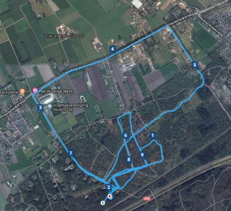 Na de 400-tjes ga ik uitlopen met woefje en zo sta ik dus na ruim 9 km weer voor de deur. Op naar volgende training maar weer.