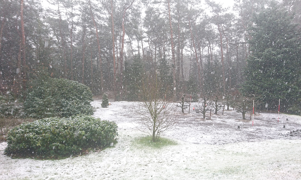Ik loop de Brandsweg af en besluit rechtdoor te lopen voor een rondje Veluwemeer in plaats van weer hetzelfde rondje als ik met fleurtje liep. Het is vrij koud maar al snel worden gelukkig mijn handen lekker warm en dat is het enige dat ik nodig heb. Het is wel nat en inmiddels valt er zelfs natte sneeuw. Ik denk niet dat de mannen gaan komen voor het stapelen van de houtwal maar wie weet. Vandaag kan S. meehelpen dus het zou wel fijn zijn eigenlijk. Ik loop vredig over de weg en het gaat best aardig eigenlijk ondanks de break tussendoor. Verderop de route zie ik dat iemand iets aan het verbranden is en omdat we vandaag noordoosten wind hebben, besluit ik niet die kant op te lopen zodat ik alles in moet ademen maar linksaf te slaan. Dat rondje loop ik ook wel eens maar het is al lang geleden nu. Ik loop niet naar het tuincentrum want dat lijkt me een beetje (te) lang voor vandaag maar loop gewoon door. Dat is echt lang geleden dat ik hier liep. Ik hobbel langs het dierenpension dat enorm verbouwd wordt. De zaken gaan zeker goed want er staat inmiddels een heel nieuw gebouw. Daarna loop ik langs een weiland waar iemand in zijn eentje schapen aan het verplaatsen is richting de kar achter de auto. Hij doet dat met een heel lang lint en het werkt ook nog. Ik grap dat ik wel even voor Border Collie kan spelen en de man moet lachen. Gelukkig zijn de schapen bijna bij de rand van het weiland en dichtbij de auto. Ik hobbel door en zie het einde van de weg al. Ik loop even langs de harderwijkerweg en loop daarna door een nieuw wijkje waar we nog naar grond gekeken hebben als belegging. Verkoop binnen 10 jaar betekent terug verkopen aan de gemeente dus ik ben blij dat ik te laat was met mijn optie. Veel te lang dus en geen winst aan te behalen blijkbaar. Inmiddels is het weer totaal omgeslagen en valt er veel natte sneeuw. Het is echt niet fijn om te werken denk ik. Lopen gaat prima, ik heb een petje op dus heb verder nergens last van.