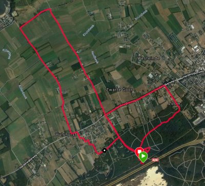 Als ik over de brandsweg richting huis loop, zie ik het autootje van de tuinman rijden. Die kan er nu misschien niet in? Ik denk namelijk dat het de collega is van de man die normaal bij ons werkt (omdat hij zelf een bus heeft). Ik ga dus niet uitlopen maar versnel nog wat zodat ik het hek open kan doen. Dat komt dus allemaal precies goed uit gelukkig. Het blijkt dat er al 3 man aan het werk is en dat hij zelf later kwam. Hij gaat dus ook gauw aan de slag. Ik ga naar binnen en trek droge kleding aan. Ik was 15,5 km onderweg vandaag en alles liep prima. Op naar de volgende run.