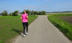 Vandaag gaan S. en ik op pad voor een wat langere ronde. Fleur gaat mee in de open doggyride om weer verder te leren. Ze doet het prima maar moet alleen nog even gaan liggen. Voorlopig blijft ze nog zitten in de kar maar stapt er verder niet uit. Zelfs niet als er haasjes in het veld rennen of een vogel op de weg zit. Dat valt dus alleszins mee. ik loop vandaag op de ratio 30/15 zodat ik kan oefenen voor de marathon in Amsterdam met Chris. Zodra we op het fietspad door het bos lopen baal ik er al van. Dat is toch geen lopen? Net als je denkt dat je begonnen bent, moet je alweer stoppen en je wacht voortdurend op het horloge. Enfin ik ga het de eerste 5 kilometer zo proberen.