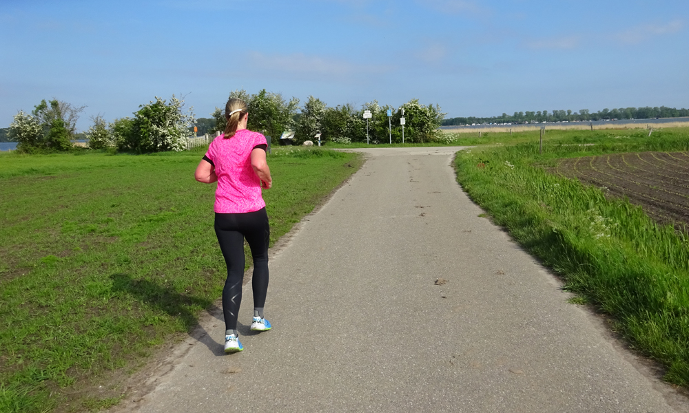 Als we weer bij de Harderwijkerweg komen, stelt S. voor om een extra lusje te maken en dat doen we. We hebben daarbij even tegenwind maar dat is niet erg. Het is een prachtige dag. Na het renrondje van 16 kilometer klok ik af. Uiteindelijk liep ik met deze ratio 7.20 min/km Dat is natuurlijk retelangzaam maar het is dan ook een duurtraining en bovendien met een rare ratio. Ik ben toch niet ontevreden over deze ratio zo. 7.30 min/km moet wel haalbaar zijn en ik ben benieuwd hoe lang ik het eigenlijk op deze manier zou kunnen volhouden. Ik liep al eerder een 15 km rondje op deze ratio maar toen had ik al bij de start last van mijn heup en liep het voor geen meter. Ik was toen ook retelangzaam overigens. Maar vandaag ging het goed dus volgende week een langere ronde en zou verder uitbouwen naar 30 km.