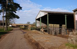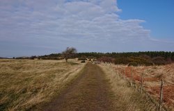 Even door de blubber en daarna over een pad langs stalling voor koeien en schapen. Jaren geleden is hier een vrouw op de horens genomen en is overleden. De koeien werden toen in de lente naar de weide gebracht, waren wild en toen ging het mis. Een eng idee omdat ik vlak daarvoor ook op die route had gelopen. Zoiets kan dus ook gebeuren terwijl je normaal op een toegankelijk pad loopt. Niet ergens waar je niet mag komen maar gewoon op een pad. Niet fijn. In ieder geval gebeurt er nu niks en is er geen beest te bekennen gelukkig. Verderop staan blijkbaar 2 schapen op de weg in plaats van in het veld dus ik lijn Fleur weer even aan voor een klein stukje. De schapen springen blij weer tussen de draden het weiland in als we voorbij lopen.