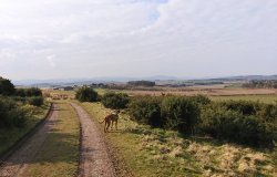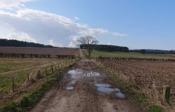 Na aankomst in het dorp gaan we gauw op pad. Eerst even door het dorp en daarna ergens een zijstraat in. Gelukkig ken ik inmiddels de weg op mijn duimpje. Vroeger moest ik vaak op de kaart kijken als ik weer eens een route gemaakt had maar nu loop ik het gewoon natuurlijk. Alleen weet Fleur nu niet de weg en wist mijn oudje dat wel! Ik laat haar al snel lekker loslopen. Ik ben benieuwd hoe dat gaat want er lopen overal fazanten en konijnen en in de velden staan ook overal schapen. Wel blijven opletten dus!