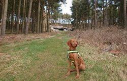 Er gebeurt eigenlijk niets op de route. We komen geen mens tegen en ook qua dieren is het eigenlijk rustig. Er fladderen en klokken wat fazanten maar verder niets dus Fleur hoeft ook niet als een dolle te jagen gelukkig. We hobbelen inmiddels weer lekker door het bos De route is afwisselend en dat is leuk lopen zeker op een beetje afstand.