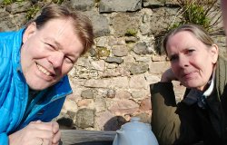 Inmiddels hebben Fleur en ik al een paar etappes van de ultra afgelegd. Maar vandaag is het zulk mooi weer dat ik besluit naar St Cuthbert’s cave te gaan en niet weer richting de kust. Er staat weinig wind en het zonnetje schijnt. S. gaat waarschijnlijk richting Belford fietsen zodat hij daar is als ik aankom. We kunnen dan samen wat drinken en eten bij de farmshop! Als hij nou maar niet te vroeg vertrekt want ik heb echt wel even nodig als ik ook nog de drone ga oplaten etc. en de afstand zelf is ook al best fors. Afwachten maar. Eerst maar eens vertrekken richting Belford. Het heeft weer gevroren dus ik moet eerst even krabben. S. heeft al bijna alles eraf maar natuurlijk heb ik weer wat te zeuren. Hij drukt niet hard genoeg nadat hij ooit alle ruiten beschadigde tijdens het krabben…..