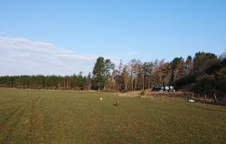 Zivaatje liep altijd netjes met me mee en keek totaal niet (meer) naar de schapen. Maar wanneer is dat nou gekomen? Wanneer werd ze nou zo braaf? Ik weet het gewoon niet meer. Maar ik ben zeker niet ontevreden hoe het gaat eigenlijk. Al snel zijn we bij het hek dat naar het bos loopt dat naar de cave leidt. Ik ga het hek door en hobbel door richting de cave.