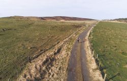 We hobbelen over het veld en dat is dit jaar prima te belopen gelukkig. Inmiddels is S. ook onderweg met zijn fietsje. Volgens mij is hij er dus veel te vroeg straks maar als hij eigenwijs is…. dan moet dat maar. Mijn planning lijkt echt wel te kloppen dus vooruit maar. Ik ga niet enorm haasten, want dat kan toch niet op dit laatste deel. Eerst over het veld, daarna dat muurtje en nog een lastig stukje met schapen en modder. We zien wel. Stap voor stap! Het uitzicht is hier geweldig en ik maak nog wat foto’s van dit laatste stuk.
