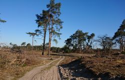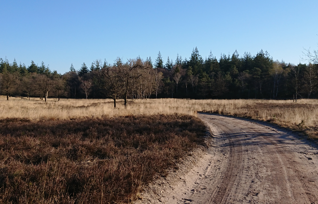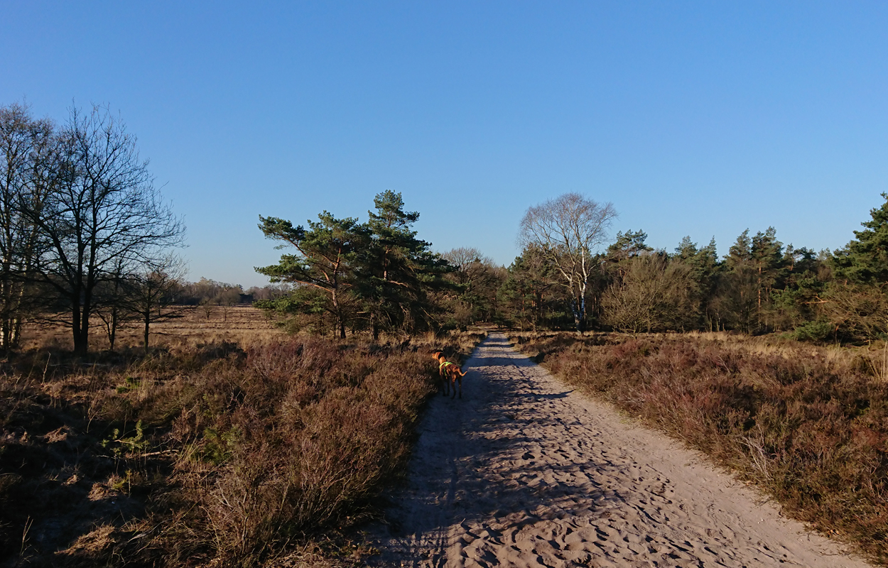 Eigenlijk lijkt het maar saai zo. Er gebeurt niets leuks of bijzonders en ik kom vandaag niemand tegen. Ik zie ook geen wild en dat is eigenlijk wel jammer. Ook de schapen lopen niet op de heide. Maar het blijft mooi en het is ook wel heerlijk rustig zo. Ik kijk om me heen en kijk naar de heide. Zou het dit jaar weer zo mooi paars worden als vorig jaar? Ik ben blij dat ik toen met Fleur en met Ziva nog mooie foto’s heb kunnen maken tussen de paarse bloemetjes. Dat was wel erg leuk. Mijn eerste zomer hier in 2018 bloeide er niets vanwege de droogte! In 2017 heb ik maar eenmaal paarse heide gezien toen ik van Hulshorst naar Garderen fietste met Ziva tijdens een bezoek aan het huis om wat dingen op te meten enzo. Maar toen was het trouwens meer roze dan paars. Die droogte was dus zo gek nog niet. Nu staat er overal hoog gras doorheen dus het zal mij benieuwen. Ik weet nu wel beter waar ik moet zijn voor heidevelden dus dat zit wel goed.