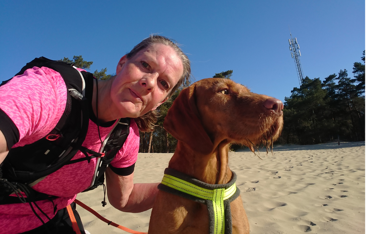 Vandaag ga ik weer netjes op tijd op pad voor mijn runnetje. Het is heerlijk weer de laatste dagen en het is ook echt warm met 20 graden in de middag. We gaan dus maar tijdig op pad. Lekker korte mouwen shirt aan maar wel even voor het wandelen mijn sleeves aan en giletje. Ik wandel rustig met Fleur en doe wat oefeningen. Daarna lopen we weer langs huis en doe ik mijn buff in de brievenbus. Die kan wel vast af want het wordt echt warm. Op het grote fietspad doe ik al mijn sleeves af en even later ook alvast mijn giletje. Het is echt warmer al en voordat ik nu veel te heet word….. Fleur heeft nog nergens last van gelukkig. Ik ga gewoon weer hetzelfde rondje lopen als gisteren denk ik. Dat was leuk en het zijn wat langere stukken om te lopen en niet steeds maar 500 meter stukjes. Naar het einde van het fietspad is het bijna 3 km vanaf huis en dat is wel even lekker. Ook kies ik weer even voor een stukje verhard. Goed voor de zooltjes van Fleur en haar nageltjes.