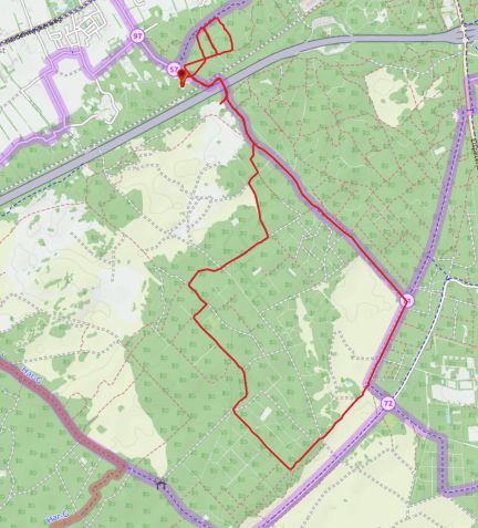 Trouwens… ik leer elke keer bij want als ik nu op de kaart kijk, zie ik dat ik heel makkelijk een kijkhut kan bezoeken op de route zoals ik nu loop. Even ergens linksaf. Volgens mij is dat de kijkhut naast het fietspad daar maar ik zal het eens doen, om te zien hoe ik dan uit kom. Je zou dan inderdaad verwachten dat er wel wild zit. Dat verklaart misschien mijn gevoel van bekeken worden ook van een paar dagen geleden. Er zijn ook delen afgesloten hier want daar staan bordjes ‘verboden toegang’. Ik ben benieuwd. Volgende keer weer eens een ander pad proberen. Hoewel ik nu denk – terwijl ik dit tik – dat het paadje dat ik zou moeten nemen naar die kijkhut juist een van die paadjes is met een bordje verboden toegang. Dat zou ook wel logisch zijn. Overmorgen eens kijken daar wat wel mogelijk is.