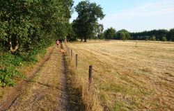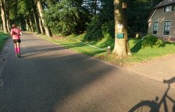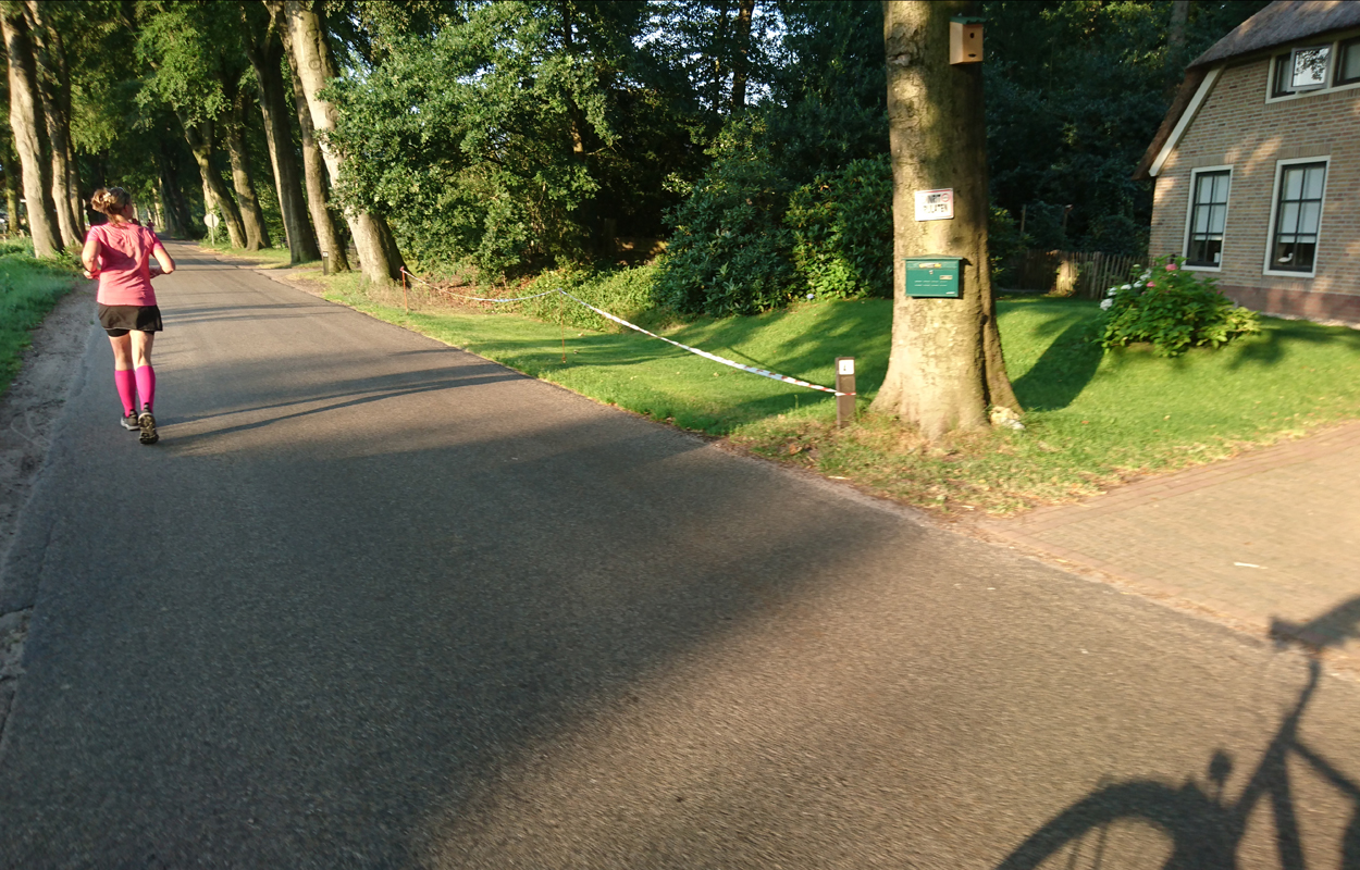 S. wil wel mee en Fleur gaat dan in de kar. We maken een rondje zoals we al eerder deden en staan na 12 km weer voor de deur. Onderweg lopen we langs het vakantiehuis. Dat voelt toch wel gek als je daar zo langs loopt en er zitten mensen in die vakantie vieren. Ik blijf het mooi vinden. Op naar de volgende run maar weer want het is eigenlijk veel te warm zo.
