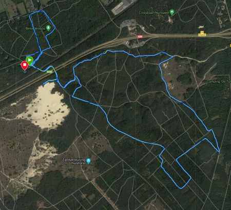 Aan het einde van de run gaan we nog even naar de zandverstuiving en daarna naar huis. Totaal heb ik 12 km op de teller, Ziva wat minder omdat ik inwandelde met Brava.