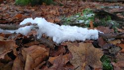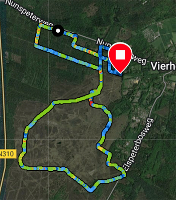 Woef is er gewoon al klaar voor en we starten door het bos waar mooi ijshaar te zien is door de kou en vochtige lucht. Ik heb gelukkig toch mijn Mafate aangetrokken want het is her en der gewoon nog glad en ijzig. Dat is dus een goede beslissing zo blijkt. Ik loop mijn gewone rondje. Woef is even stout als ze – eindelijk – weer even kan spelen met een andere hond na de loopsheid. Ze komt niet mee en ik moet wachten. Nou ja het is geen wedstrijd zullen we maar zeggen. We hobbelen daarna rustige verder. Ik zie verder niets, wel een paar nieuwe sporen van edelherten maar geen wolf, gewoon niks. Ik weet nu dat ik met een kleine 6 km bij de afslag naar het bos sta en dat klopt. Maar vandaag wil ik weliswaar een langere ronde doen (ook al gaat het zeer matig) maar ik wilde een lusje doen aan het einde en zo doen we het ook. Als ik weet terug ben bij het losloopgebied loop ik door en neem de eerste grote afslag het bos weer in. Ik weet inmiddels waar ik weer rechtsaf kan (na de 2 heuveltjes) en kijkend op de kaart zie ik later dat dat ook het laatste pad is voor het einde. Wil ik langer, dan moet ik dus door tot het einde. Weer wat geleerd. Ik hobbel nu terug naar het pad parallel aan de weg en sla ergens tegen het einde weer rechtsaf voor een klein extra lusje. Op deze manier kom ik bij het middelste parallel pad weer uit bij het losloopgebied. Allemaal niet interessant, maar voor mij nu wel leuk om te ontdekken want dit is een prima weg voor verlenging, gewoon lekker rechtdoor en breed zonder slalommen om maar wat extra meters te krijgen. Ik laat Fleur weer lekker los bij het losloopgebied, hobbel nog even verder en klok af. Na 10,5 km staan we weer bij de auto. Vannacht zouden we sneeuw moeten krijgen, dus misschien is het morgen wel zo prachtig dat ik nog een rondje ga doen en dan dinsdag weer. We zullen zien hoe het loopt. In ieder geval zit deze weer in de knip.