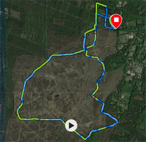 Vandaag weer op pad voor een rondje. Het gaat gelukkig nog goed met mijn ogen en gezicht dus dat is een meevaller. Eergisteren ging het lopen niet zo lekker omdat ik weinig eet, maar vandaag ga ik eens kijken of mijn lichaam er al aan begint te wennen. Het is gelukkig heerlijk rustig bij het begin van de route dus vooruit maar. Even opwarmen door het bos en het eerste rondje hobbelen richting het aanlijngebied. Niemand te bekennen. Heerlijk! Het lopen lijkt een stuk beter te gaan dan donderdag gelukkig. Het voelt best goed. Woefje neemt af en toe een brokje en is blij. Ik dan ook natuurlijk. Ik lijn haar aan en start met iets serieuzer lopen. Ik doe zeker het begin wel RWR omdat mijn energie voorraad natuurlijk beperkt is vanwege het eten. Er ligt weer een nieuwe wolvendrol op het pad. Ik probeer ietsje door te lopen en dat lijkt ook goed te gaan. Hobbelend met mijn blije woefje gaan we verder over het wolvenpad. Uiteindelijk gaat Fleur ook lekker voor me uit lopen. Veel gezelliger zo achter het schommelende lijfje aan. Ik loop nu ook meer stukken gewoon door de wandelpauzes heen en dat gaat prima. Ik neem weer het paardenpad naar het bos op de terugweg zoals ik eergisteren ook deed omdat de uitlaatdienst eraan kwam. Dat is rul en zacht maar gaat redelijk goed. Vooral het pad langs het bos is rul en lastig alsof ik een halve stap achteruit doe bij elke stap. Maar we komen natuurlijk gewoon weer bij de laatste afslag waar ik afklok en fleur weer lekker los laat. Na 8 km staan we weer bij de auto. Mijn snelheid was 50 sec/km sneller dan eergisteren met (natuurlijk) een hogere hartslag. Maar ik liep vandaag en eergisteren gewoon zoals het ging dus je kunt er weinig van zeggen blijkbaar. Op naar de volgende run maar weer. Ik probeer dan iets langer te lopen.