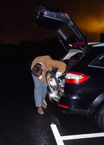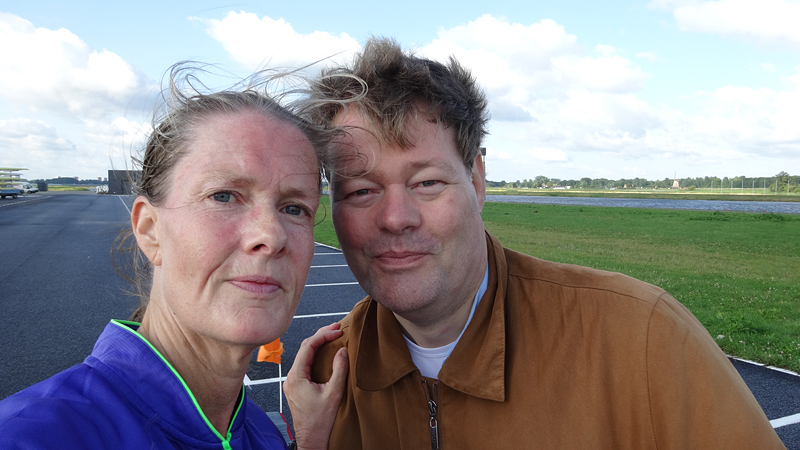 Als we aankomen is het nog donker maar nog wel droog. Er staat een harde wind die we op een heel stuk tegen zullen hebben. Soit, daar doe ik dus niks aan en nadat de kar achter de fiets zit, gaan we op pad. Ook deze keer ga ik toch nog even achter de bootjes piesen voor vertrek. Ik krijg er al aardigheid in maar zo in het donker durf ik het wel aan. Vraag me af hoe andere dames dat onderweg doen!