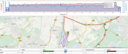 * lap: 28 km: 6.45 min/km – HF 138(max 148 met piekje 157 bij versnelling einde) – cadans 170 (met metronoom) – ademhaling 2/3 (voor zover dat ging met de wind)