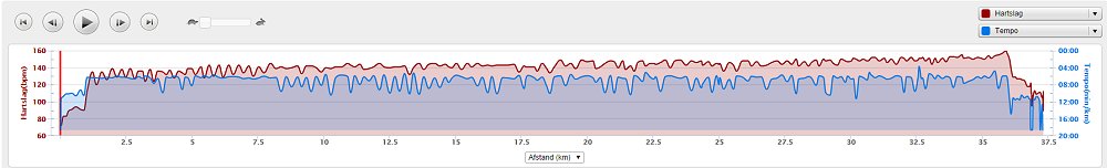 * lap: 35 km – 6.44 min/km (3.55.42) – 143(160) – cadans 78 zonder metronoom – stride 0.95 mtr