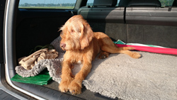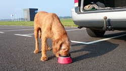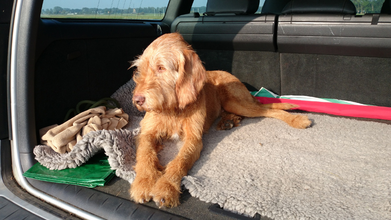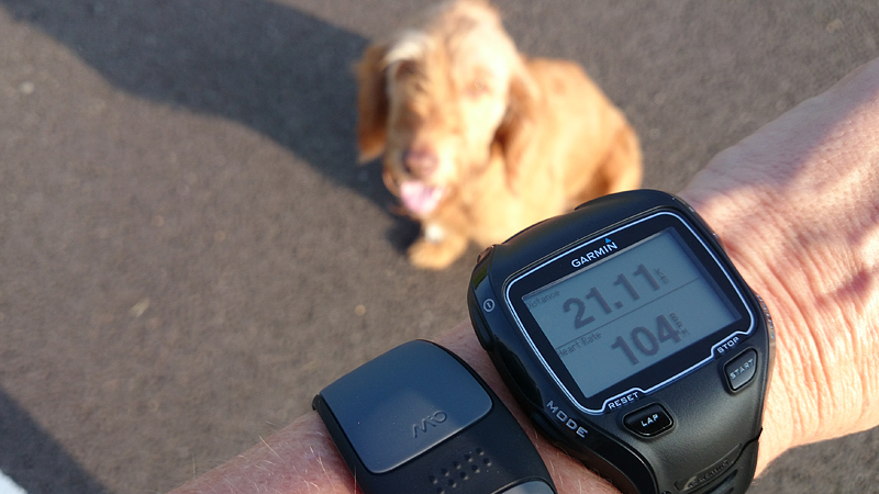 Toen we de kerntraining gedaan hadden, was het tijd voor de 2 miles cool down. Tsjonge, met het uitlopen dus gewoon nog even 4 km wegwerken! Maar ook dat gaat prima en op MAF loop ik het laatste stukje uit. Als we bij de auto zitten, is alles klaar en hoeven we alleen nog maar uit te lopen. Woef hijgt en vindt het wel genoeg. Het zonnetje schijnt ook ineens volop dus ik ben erg blij dat het niet zo zonnig was eerder op de run, want anders had ik de afstand niet helemaal kunnen uitlopen met haar op deze manier. Dit was voor haar ook echt genoeg en zaterdag mag ze lekker een stuk gewoon in de kar. Genoeg is genoeg!