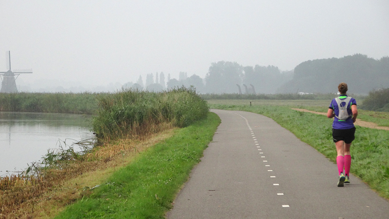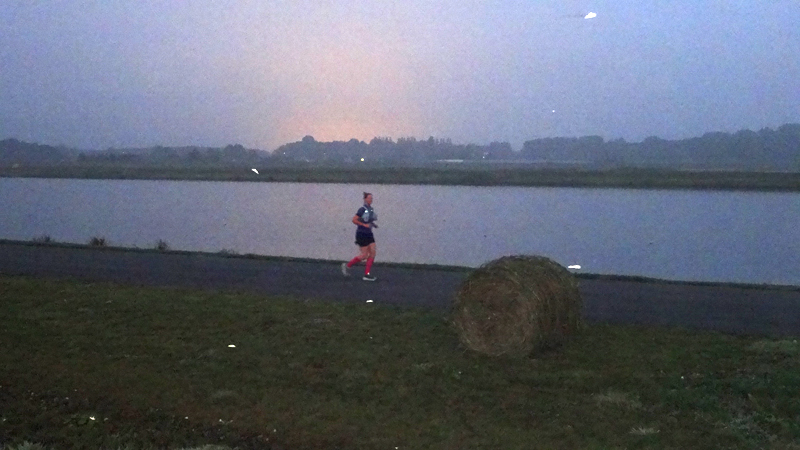 Na de 800 meter warming up, ga ik van start voor de 2 mile easy recovery run. Dat is saai en langzaam maar het voelt allemaal prima.