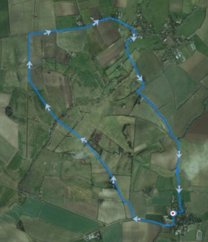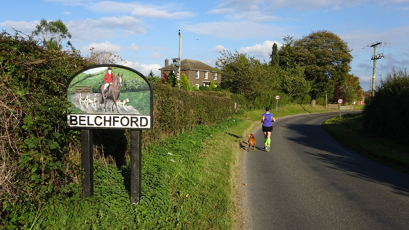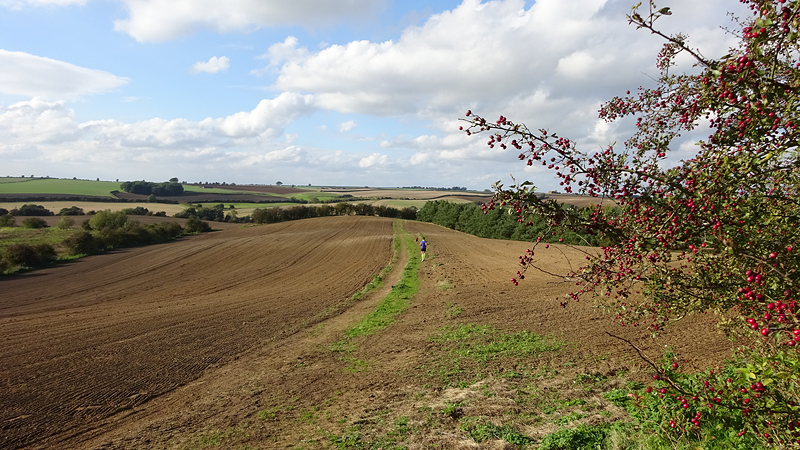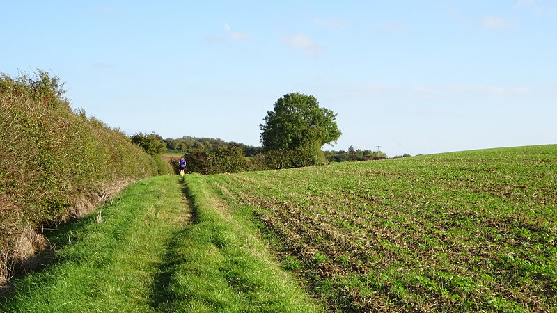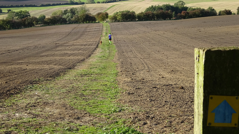 Langs de Blue Bel Inn waar we al wat gegeten hebben na een eerdere run en weer rechtsaf het veld op over de Viking Way. De Viking Way is een 147 mile lange route waar we nog maar een klein stukje van hebben gezien.