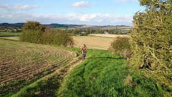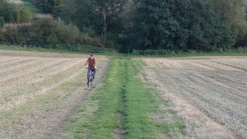 Ik hobbel door de gaten en bobbels en roep naar S. of hij nu begrijpt waarom ik niet een enorm hoge cadans heb op dit terrein. Ik hoor geen antwoord, kennelijk is hij nog ergens een foto aan het maken.