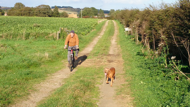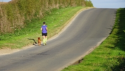 Na het veld sloegen we rechtsaf richting het dorpje. Even een stukje over de weg dus dat is ook wel lekker op de fiets. Woeffie had het best warm maar het was allemaal nog prima te doen.