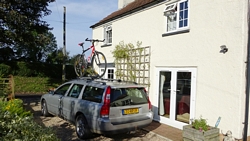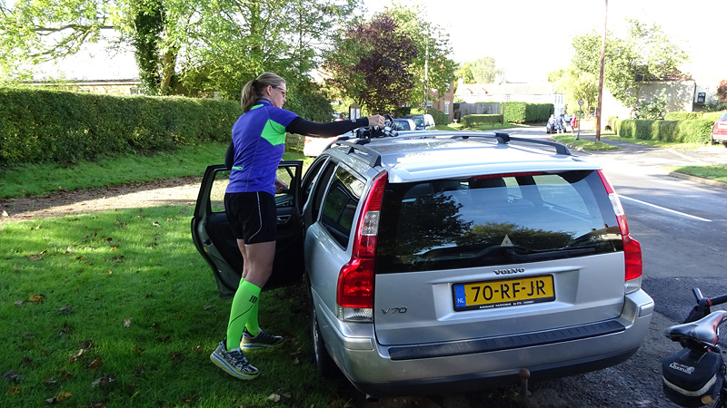 We gingen met de auto dus eerst naar Belchford. Fietsje op het dak, hondje zielig thuis.