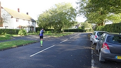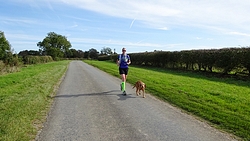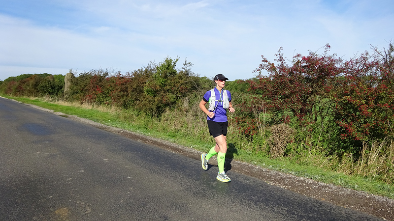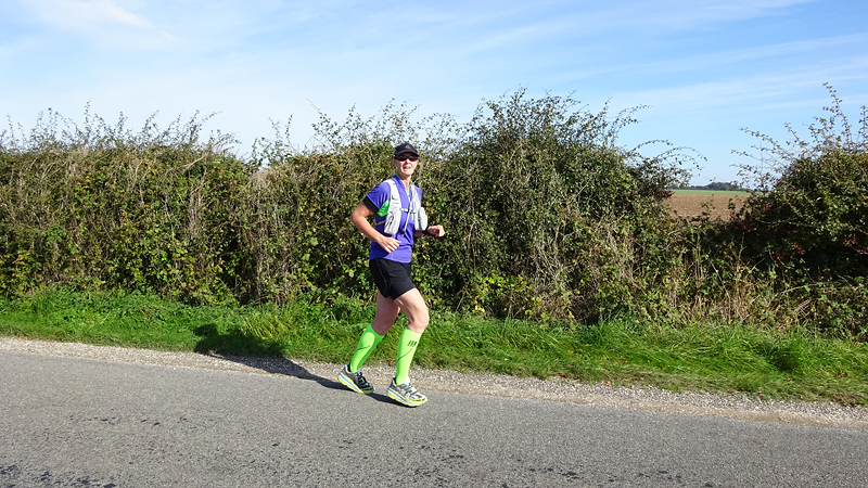 Met 5 en 10 km lag ik nog fraai op tempo en ik was wel happy. Ik vond het op zich best lastig nog, en even overlegden we of we niet over de Roman Way naar Belchford zouden gaan, ook al om die 2,5 km lange klim te vermijden naar Fulletby aan het einde. Maar uiteindelijk besloten we gewoon door te gaan en maar eens te kijken hoe dat zou lopen. Inmiddels had ik ook mijn petje afgedaan en dat hielp een stuk want het was inmiddels toch wel vrij warm geworden! Ik startte de warming up notabene nog met buff rond mijn nek en de sleeves aan maar die had ik al snel allemaal af gedaan natuurlijk.