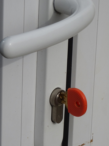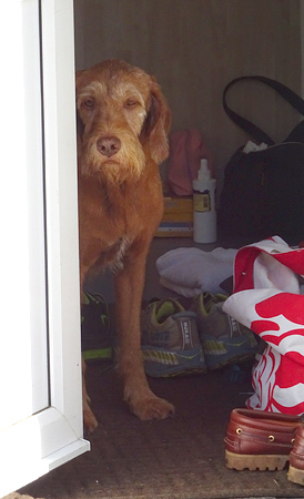 Als we bij het huisje komen, bemerken we ineens dat de sleutel natuurlijk nog in de auto ligt. Ik opper dat de overbuurman de sleutel heeft en hij loopt net naar zijn auto om weg te gaan dus we zijn nog op tijd om de sleutel te vragen en te krijgen. Een gelukje dus!! Anders zouden we dus zonder woef weer naar de auto moeten lopen en zou ze nog niks hebben gehad als wandeling!