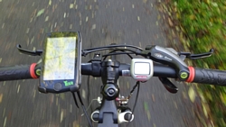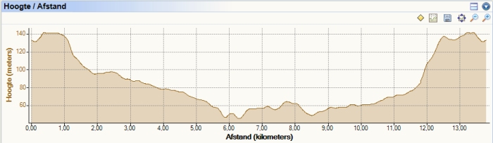 Gisteren regende het behoorlijk, maar volgens de voorspellingen zou het vandaag in de ochtend mooi weer worden en dat bleek ook te kloppen. Het zonnetje scheen maar het was aanvankelijk nog vrij fris. Daarom maar gestart met de lange tight en aan het begin met de sleeves aan en de buff om mijn nek. Natuurlijk bleek dat al snel te warm en liep ik toch lekker met korte mouwen.