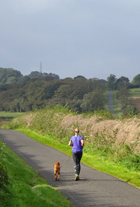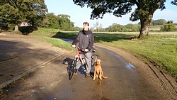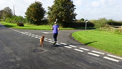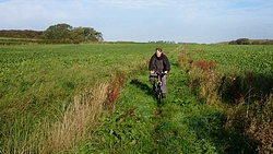We hadden een rondje uitgezet van 14 kilometer, deels over de weg, deels over een onverhard deel dat we al eens eerder liepen en dat met de fiets wel te doen zou zijn ondanks de regen van voorgaande dagen. We zouden weer eindigen met de klim richting Fulletby maar kregen daarvoor in ruil een dalend begin dus dat was wel lekker lopen! Helaas viel de riem van woef precies in een plas en kon ik dus een natte riem in mijn broek stoppen.