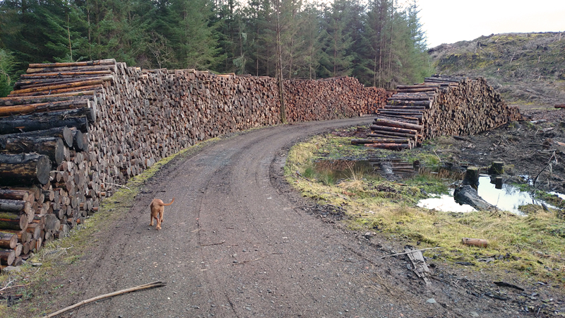 Er wordt flink gekapt in het bos en het ziet er daarom wel anders uit dan vorig jaar. Maar mooi blijft het! Eerst het bekende stukje omhoog, en dan uiteindelijk links af voor de lus naar de Glen. Vorig jaar moest ik daar door een enorme modderboel dus ik was benieuwd hoe dat dit jaar zou zijn.