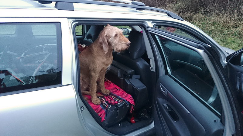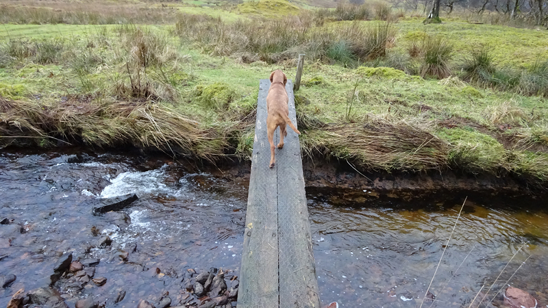 De crossing naar de Glen is prima. Wafje gaat eerst even uitgebreid badderen en drinken en neemt daarna toch maar het plankje om over te steken.