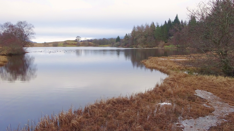 Daarna lopen we een stukje over de weg en gaan weer omhoog bij een garden die open is voor publiek. Vorig jaar moest ik daar nog enorm zoeken maar nu weet ik waar ik heen moet. We hobbelen door en ineens zie ik rechts van me een watertje in de diepte. Dat zag ik vorig jaar niet maar toen was het grijs en donker weer. Ik kijk op de kaart en besluit erheen te gaan want er loopt in ieder geval een pad naar het water.