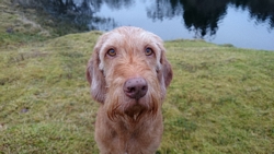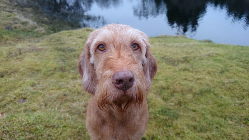 Op een bepaald punt gaat waf keihard heen en weer rennen alsof ze haar gekke half uurtje heeft. Ik probeer het te filmen maar tegen de tijd dat ik klaar ben, is zij ook wel uitgedraafd. We lopen weer verder en ik geniet. Uiteindelijk wordt het pad alleen een modderig paadje maar er staan keurige roodgekleurde paaltjes dus ik zal wel weer bij de bel uitkomen en dat klopt ook.
