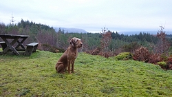 Vandaag toch maar weer op pad omdat het lekker weer is. S. blijft thuis, want de fiets staat nog met een lekke band na ons avontuur van gisteren. Wafje mag weer mee en heeft er duidelijk zin in. Ik kies voor Fearnoch met een stukje over Glen Lonan. Vorig jaar liep ik dat rondje ook, maar toen waaide het keihard en wist ik ook de weg niet. Nu herkende ik alles en kon ik gewoon lekker doorhobbelen over de paden en de heuvels. Uiteindelijk zou ik rond de 400 hoogtemeters weglopen.